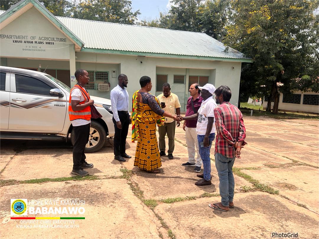 Upon arrival, the team was warmly received by the District Chief Executive for Kwahu Afram Plains North, Hon. Kate Mawusi Babanawo, alongside the District Chief Executive for Kwahu Afram Plains South District, Hon. Moses Tangbe. Their presence underscored the importance of the project to both districts and highlighted the collaborative effort between local authorities and private sector stakeholders.